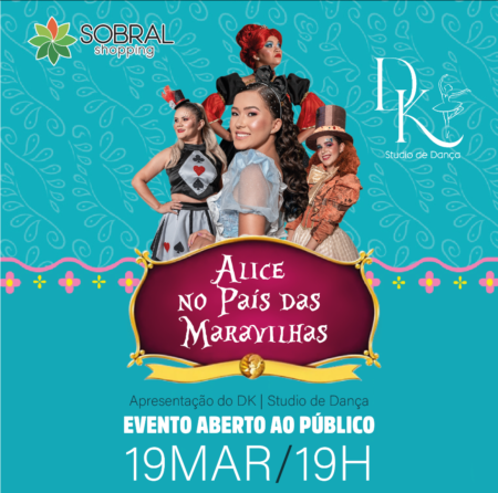 O Sobral Shopping e o DK Studio levam para a praça de alimentação do Sobral Shopping, o mundo mágico de “Alice no País das Maravilhas”! ❤️ A super apresentação desse ballet irá encantar o seu sábado. O evento será totalmente gratuito e começará a partir das 19h. Venha se divertir com a gente!