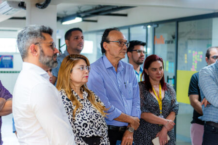 O Superintendente do SESI Ceará e Diretor Regional do SENAI Ceará, Paulo André Holanda, acompanhado do Superintendente do Superintendente de Relações Institucionais da Federação das Indústrias do Estado do Ceará (FIEC), Sérgio Lopes, recebeu comitiva composta por empresários e gestores públicos dos municípios cearenses de Sobral, Itapajé, Jijoca de Jericoacoara e São Benedito. O objetivo foi conhecer o Instituto SENAI de Tecnologia (IST) e o Observatório da Indústria. A ação foi puxada pelo Empresário e Diretor Regional da FIEC em Sobral, Dr. Fernando Ibiapina, e contou com o apoio do Gerente da Unidade do SESI e SENAI de Sobral, Elson Mesquita.