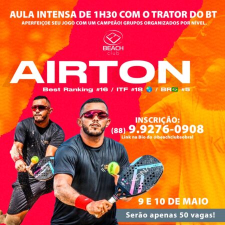 O Beach Club tem uma super novidade para o próximo mês de maio. Nos dias 9 e 10 de maio, o super campeão AIRTON “TRATOR” RODRIGUES, 5° no ranking brasileiro e 16° da ITF, fará uma CLÍNICA EXCLUSIVA, com aulas interativas com dicas muito bacanas para quem quer ser fera nesse esporte.