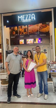 O Mezza Food Service, restaurante da empresária Daniele Fernandes, no Sobral Shopping, firmou convênio com a Grendene, passando a oferecer descontos aos colaboradores da empresa calçadista que frequentam a praça de alimentação do shopping sobralense. A assinatura do contrato de parceria foi assinado nesta segunda-feira (8/5), e passa a valer já a partir desta terça-feira (9/5). Vale para todo o cardápio, todos os dias da semana, das 10h as 22h, e a validação é mediante a apresentação do crachá funcional. José Gentile e Flávio Mauricio representaram a Grendene.