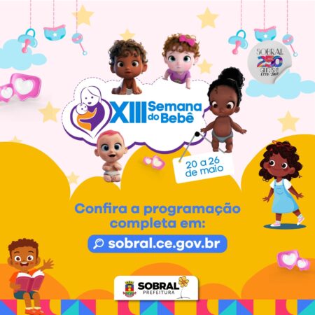 De 20 a 26 de maio, será realizada a XIII Semana do Bebê de Sobral. Com uma programação diversificada, a Semana é composta por ações macro, voltadas para a comunidade em geral; ações intersetoriais territoriais, organizadas pelas unidades públicas de Saúde, Educação e Assistência Social dos territórios; e pelas ações institucionais, que serão realizadas por cada serviço, empresa, escola pública ou privada, voltadas para o seu próprio público.