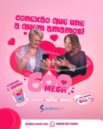 Maio é o mês de celebrar aquelas que nos amam incondicionalmente: as mães. E para manter essa conexão especial que une a todos nós, a Sobralnet oferece um plano Incrível para as mamães: aproveite os 600 Mega + Aplicativos incríveis para ficar ainda mais próxima de quem ama. Se precisar de ajuda, ligue ou mande mensagem para nosso WhatsApp no 0800 911 1000.