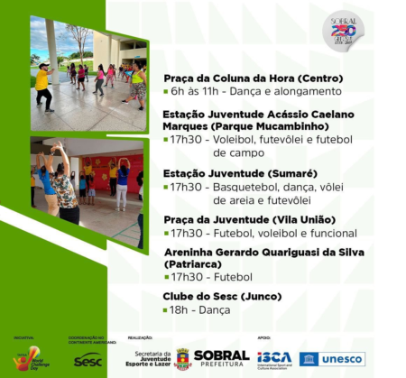 Sobral participa do Dia do Desafio 2023, nesta quarta (31/05), com o apoio da Prefeitura de Sobral, por meio da Secretaria da Juventude, Esporte e Lazer (Secjel). A 29ª edição da maior campanha mundial de incentivo à prática regular de atividades físicas e esportivas em todas as fases da vida e para todos os públicos terá como tema “Muito mais que um dia!”.