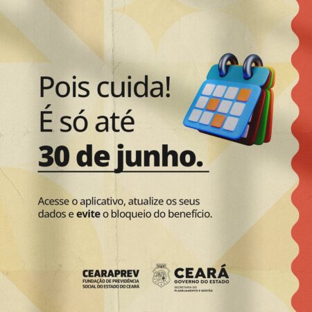 Não deixe para a última hora, acesse o aplicativo: Cearaprev, faça o cadastro e a prova de vida 2023. O objetivo é atualizar os dados dos segurados e pensionistas do estado, garantindo uma maior organização no sistema. Para aqueles que já realizaram o cadastro em 2021, basta atualizar os dados antigos, aos novatos, é solicitado um preenchimento completo. Baixe agora o aplicativo e faça a atualização dos seus dados. Lembre-se: é até 30 de junho.