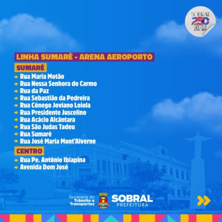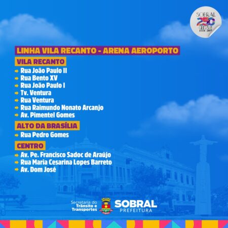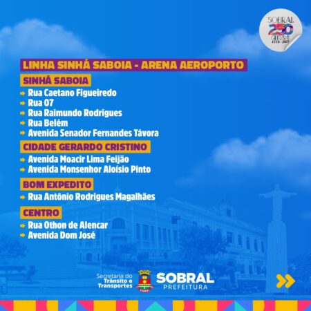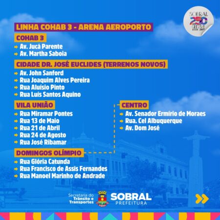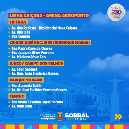 Veja quais serão as rotas e em quais bairros as linhas exclusivas dos ônibus do TranSol irão percorrer para a festa de aniversário de 250 anos de Sobral