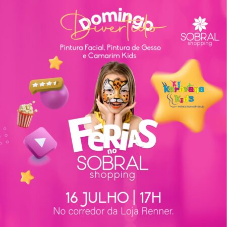 Férias é no #seushopping! Neste domingo, 16 de julho, O Sobral shopping recebe mais uma edição do Domingo Divertido, com muita pintura facial, pintura de gesso e camarim kids, a partir das 17h no corredor da loja Renner. Venha aproveitar suas férias no Sobral Shopping!
