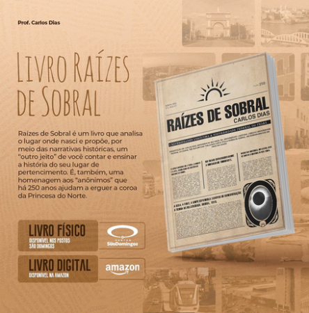 Recém lançado, com grande festa no Becco do Cotovelo, o livro ‘Raízes de Sobral’, do professor e escritor sobralense Carlos Dias já está disponível para venda! O livro físico você encontra na Max Livros, no Becco do Cotovelo e nos Postos São Domingos. Já o livro digital pode ser encontrado na Amazon (www.amazon.com.br).