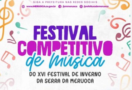 A Coordenação do Festival Competitivo de Música do XVI Festival de Inverno da Serra da Meruoca, através da Associação Cultural Solidariedade e Arte – SOLAR e a Prefeitura Municipal de Meruoca, realizadora desse festival, tornam público o resultado da seleção das 12 músicas classificadas para a final de seu festival competitivo e ainda as 03 músicas suplentes, que disputarão R$ 19.000,00 em prêmios, no próximo dia 09 de setembro, em Meruoca – CE.