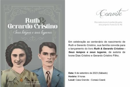 A cidade de Coreaú estará em festa no próximo sábado (9/9). Ali, os filhos de Ruth e Gerardo Cristino de Menezes – Vicente, Iduina, Leopoldo, Joana, Leônidas, Gerardo e Francisco, genros, noras, netos e bisnetos – reunirão amigo e parentes para comemora o centenário do casal. O encontro será na Casa Grande dos Cristino, no centro da cidade. Como parte das comemorações, Ivone e Gerardo Cristino Filho lançam o livro “Ruth & Gerardo Cristino – Seus Tempos e Seus Lugares”. A solenidade começa as 9h.