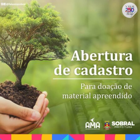 A Agência Municipal do Meio Ambiente (AMA) de Sobral abriu cadastro para doação de materiais apreendidos nas ações feitas pela fiscalização da AMA em razão da prática de infrações ambientais, em acordo com os termos da Normativa AMA n.º 04, de 10 de julho de 2019. Materiais como produtos e subprodutos da fauna e flora, madeiras, equipamentos, entre outros, estão na lista.
