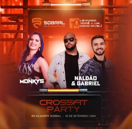 Anota na agenda que é dia 16 de setembro às 20h na R9 Academy e para fazer o agito acontecer teremos Naldão & Gabriel e DJ Monkys comandando a playlist dessa festa. Esperamos você para curtir com a gente nossa Crossfit Party!