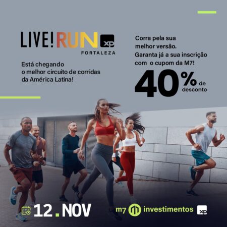 Em Fortaleza, a etapa acontece no dia 12 de novembro. Com o nosso cupom exclusivo da M7 Investimentos, você garante um desconto incrível de 40% nos kits do atleta e premium.