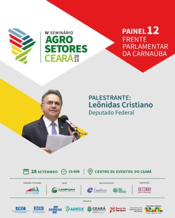 O deputado federal Leônidas Cristino, presidente da Frente Parlamentar em Defesa da Carnaúba, participa nesta quinta-feira (28/9) como palestrante do 5º Seminário Agrosetores do Ceará, que acontece no Centro de Eventos, em Fortaleza.