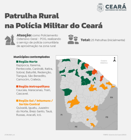 Inicialmente, serão 25 patrulhas com ordem de implantação começando pela Região Norte, seguindo para a Região Metropolitana de Fortaleza, e por último as regiões Sul, Sertão Central e Inhamuns. De acordo com o titular da SSPDS, a ideia é que até 2024 essas patrulhas cheguem a 100, e sempre atuando em áreas apontadas pelos órgãos de inteligência da Secretaria.