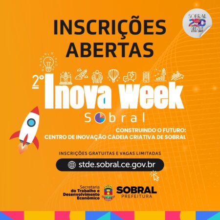 A Prefeitura de Sobral, por meio da Secretaria do Trabalho e Desenvolvimento Econômico (STDE), realizará, nos dias 19 e 20 de outubro (quinta e sexta-feira), o 2° Inova Week Sobral, para atuantes do segmento de inovação e tecnologia. O evento acontece na Universidade Estadual Vale do Acaraú (UVA) – Campus Betânia (compondo a programação do Outubro UVA) e em instituições parceiras. Os interessados podem se inscrever de forma gratuita no link disponível AQUI