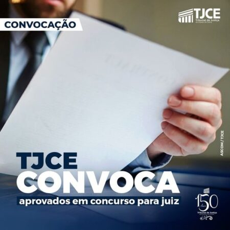 O Judiciário cearense está convocando 19 aprovados(as) no Concurso Público para Provimento do Cargo de Juiz(as) Substituto(as) do Tribunal de Justiça do Ceará (TJCE), realizado em 2019. O Edital nº 265/2023 (AQUI) foi publicado no Diário da Justiça desta terça-feira (17/10). A solenidade de posse está marcada para 12 de janeiro de 2024, às 10h, na Escola Superior da Magistratura do Ceará (Esmec), às 10h. Clique AQUI para ver a lista de convocados.