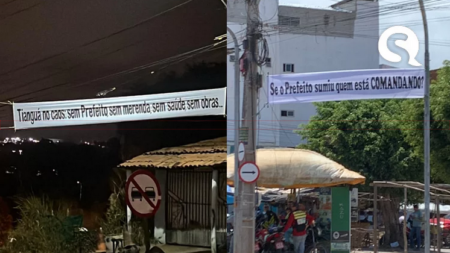A cidade de Tianguá, amanheceu neste domingo (22/10) com diversas faixas espalhadas por diferentes pontos, questionando a ausência do prefeito e apontando falhas na administração municipal. Uma das faixas destaca de forma contundente: “Tianguá no Caos: sem prefeito, sem merenda escolar, sem saúde e sem obras…”.