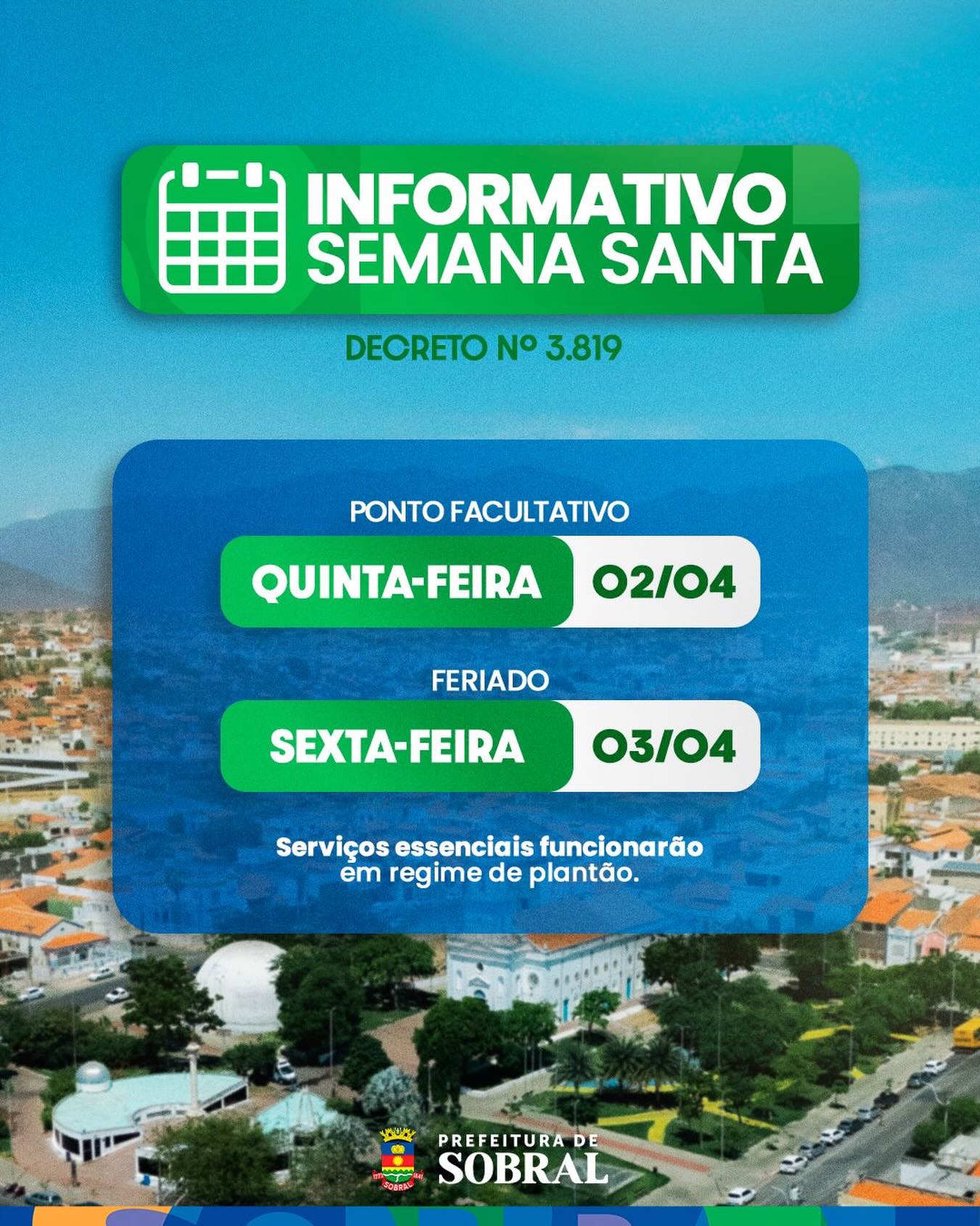 Prefeitura decreta ponto facultativo na quinta-feira santa e amplia feriadão em Sobral