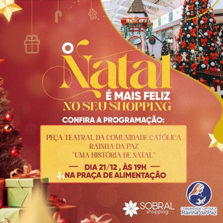 Na quinta-feira (21/12), a Comunidade Católica Rainha da Paz apresenta a Peça Teatral “Uma História de Natal”, que encantará a praça de alimentação com muita emoção!! Será a partir das 19h, esperamos todos vocês!! ✨❤️
