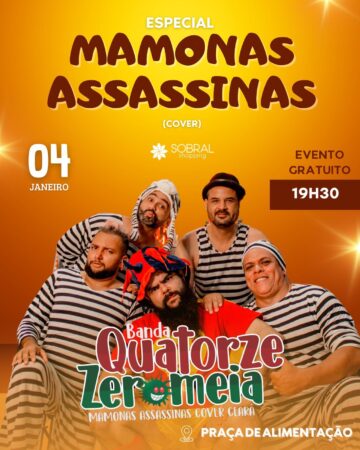Na quinta-feira (04/01), a banda Quatorze Zero Meia (@mamonascoverceara), cover dos Mamonas Assassinas estará animando a praça de alimentação DO Sobral Shopping, a partir das 19h30 com muita música ao vivo!! Então já aproveite, assista ao filme e depois venha curtir nosso show!!