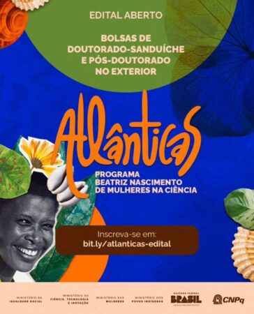 A Chamada Atlânticas MCTI/CNPq/MIR/MMULHERES/MPI Nº 36/23 para Bolsas no Exterior (AQUI) conta com R$ 6 milhões em investimentos, o programa contempla bolsas de doutorado sanduíche e de pós-doutorado no exterior para pesquisadoras negras, quilombolas, indígenas e ciganas regularmente matriculadas em cursos de doutorado reconhecido pela Capes, ou que tenham concluído programa de pós-graduação reconhecido pela Capes em qualquer área de conhecimento.