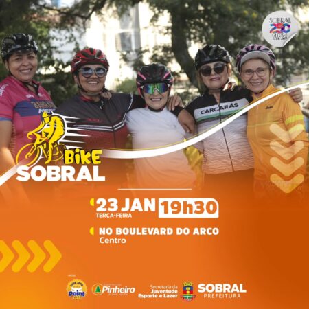 Terça-feira é dia de pedalar pelas belas ruas de Sobral com o turma da Secretaria de Esporte, Lazer e Juventude. O ponto de encontro será no Boulevard do Arco, nesta terça-feira (23/1), a partir das 19h30.