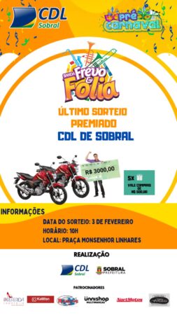 Hoje, 3 de fevereiro, é o segundo e último sorteio da Campanha Natal Premiado da CDL de Sobral. O) evento, ao som de muitas marchinhas de carnaval, acontece a partir das 10h, na praça Mons. Linhares, no centro comercial da cidade. Segundo o presidente da CDL, Alisson Aragão, essa foi talvez a maior campanha natalina de Sobral em todos os tempos, com número de vendas agradando em cheio os comerciantes e clientes, oq ue representou aumento nas vendas e geração de emprego e renda. “Queria agradecer a parceria da Prefeitura de Sobral, dos patrocinadores e apoiadores, com a certeza de quem fizemos bem feito e faremos no final de 2024, uma campanha ainda melhor”.