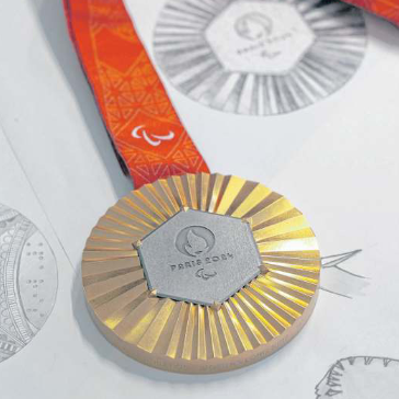 Ouro, prata, bronze: as medalhas dos Jogos Olímpicos e Paralímpicos de Paris, apresentadas semana passada, também terão um pedaço da Torre Eiffel, com uma peça hexagonal da ‘Dama de Ferro’ colocada em cada uma das 5.084 condecorações. A frente das medalhas é decorada com um hexágono de ferro procedente da Torre Eiffel e com o logotipo Paris-2024, de onde emanam raios gravados no metal da medalha. No verso, o Comitê Olímpico Internacional (COI) impõe a representação da deusa grega da vitória Niké, do estádio Panatenaico e da Acrópole, mas Paris-2024 obteve autorização excepcional para acrescentar o desenho da Torre Eiffel.