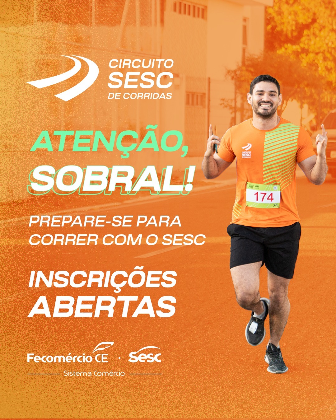 ♂️ Atenção, Sobral! Chegou a hora de colocar a corrida no calendário! O Circuito Sesc de Corrida está com inscrições abertas e você não pode ficar de fora.