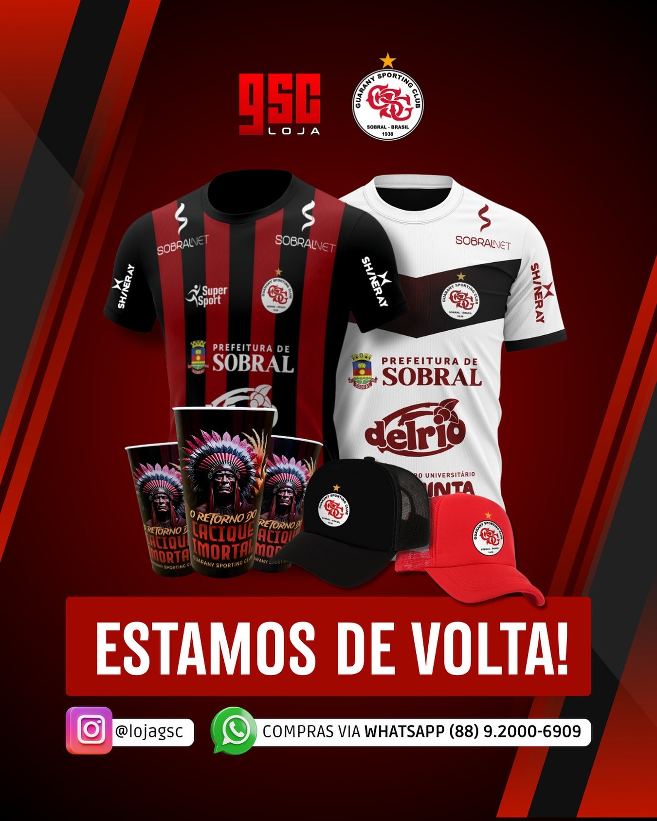 Com o objetivo de aproximar ainda mais o Guarany de sua torcida, os produtos oficiais estão disponíveis para compra direta pelo WhatsApp (88) 9.2000-6909 ou pelo perfil @lojagsc no Instagram. Além disso, as entregas são realizadas para todo o Brasil, via Correios, com frete calculado no ato da compra.