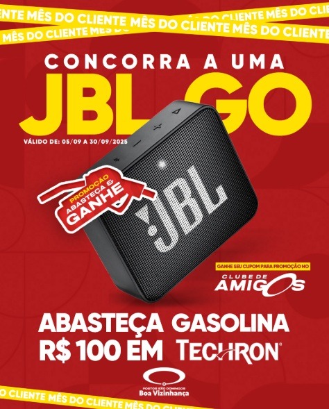 Abastecendo R$ 100,00 de Gasolina Aditivada Techron, você já garante um cupom no nosso Clube de Amigos e estará concorrendo a uma JBL GO novinha
