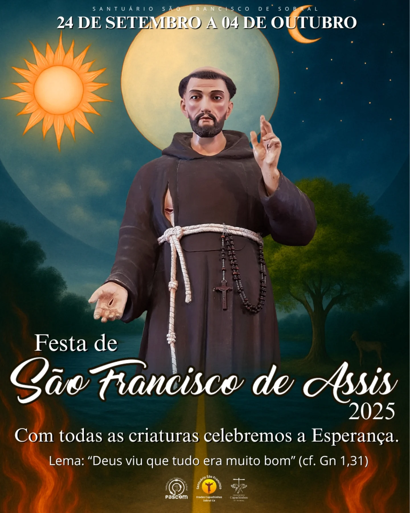 Com o tema “Com todas as criaturas celebrarmos a Esperança” e o lema “Deus viu tudo que era bom” (cf. Gn 1,31), a programação traz dias repletos de oração, música, fraternidade e celebração, inspirados na vida de São Francisco, exemplo de amor a Deus, ao próximo e à natureza.