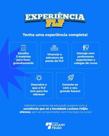 Com a Experiência FLF, você pode viver na prática como é ser um aluno da nossa instituição antes mesmo de concluir sua transferência e ainda ter a oportunidade de estudar três disciplinas totalmente gratuitas.