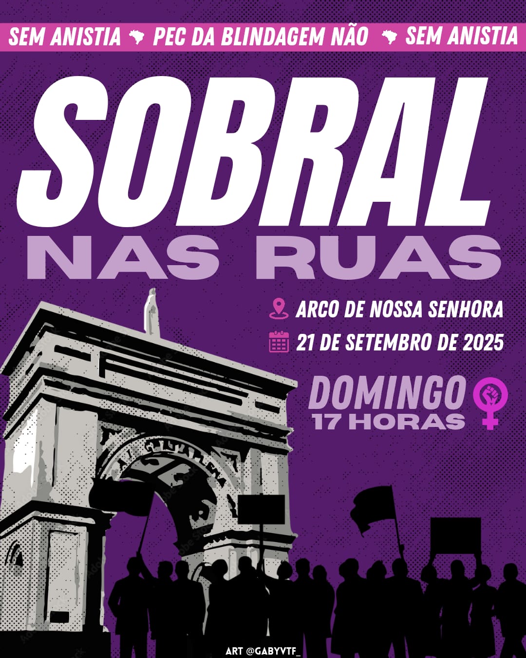 Sobral se prepara para um ato público neste domingo (21/9), às 17h, no Arco de Nossa Senhora. O movimento, intitulado “Sobral nas ruas”, reúne cidadãos e entidades em protesto contra a chamada PEC da Blindagem e contra qualquer proposta de anistia.