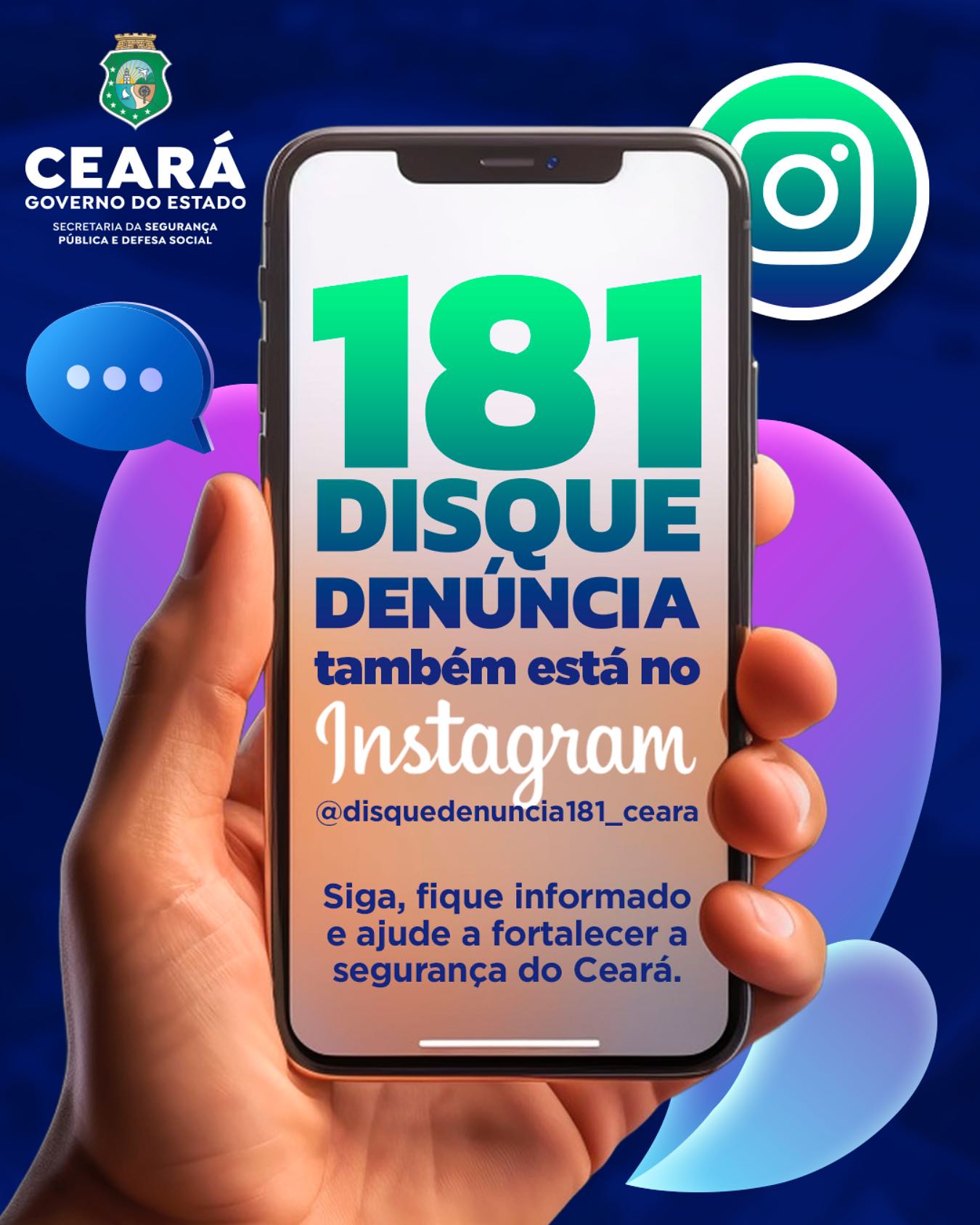 O Disque-Denúncia 181 lançou um perfil oficial no Instagram (@disquedenuncia181_ceara) para divulgar ações e reforçar a aproximação com a população por meio das redes sociais. O canal, vinculado à Secretaria da Segurança Pública e Defesa Social do Ceará (SSPDS-CE), é consolidado como ferramenta para recebimento de denúncias anônimas.