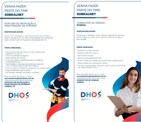 Sobralnet oferece OPORTUNIDADES em diversas áreas