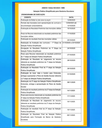 Veja o Cronograma Completa do processo seletivo: