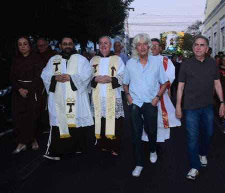 Devoto de São Francisco, o deputado federal Leônidas Cristino participou no sábado (4/10) da procissão em homenagem ao santo protetor dos animais em Sobral. Ao lado da esposa Lily e da deputada estadual Lia Gomes, Leônidas fez questão de cumprimentar o Frei Sérgio, reitor do Santuário franciscano da cidade.