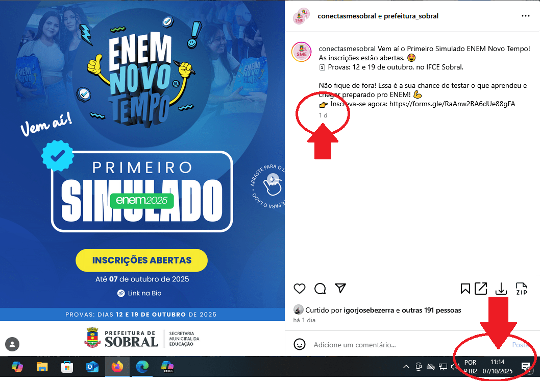 O simulado será aplicado em duas etapas, nos dias 12 e 19 de outubro, no Instituto Federal do Ceará (IFCE – Campus Sobral), localizado na Av. Dr. Guarany, nº 317, Bairro Derby. A iniciativa busca oferecer aos participantes a oportunidade de avaliar seus conhecimentos, testar estratégias e se preparar com mais segurança para o exame.