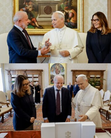 “Eu e a Janja tivemos um excelente encontro com sua Santidade, o Papa Leão XIV, no Vaticano. Conversamos sobre religião, fé, o Brasil e os imensos desafios que temos que enfrentar no mundo”, escreveu o presidente.