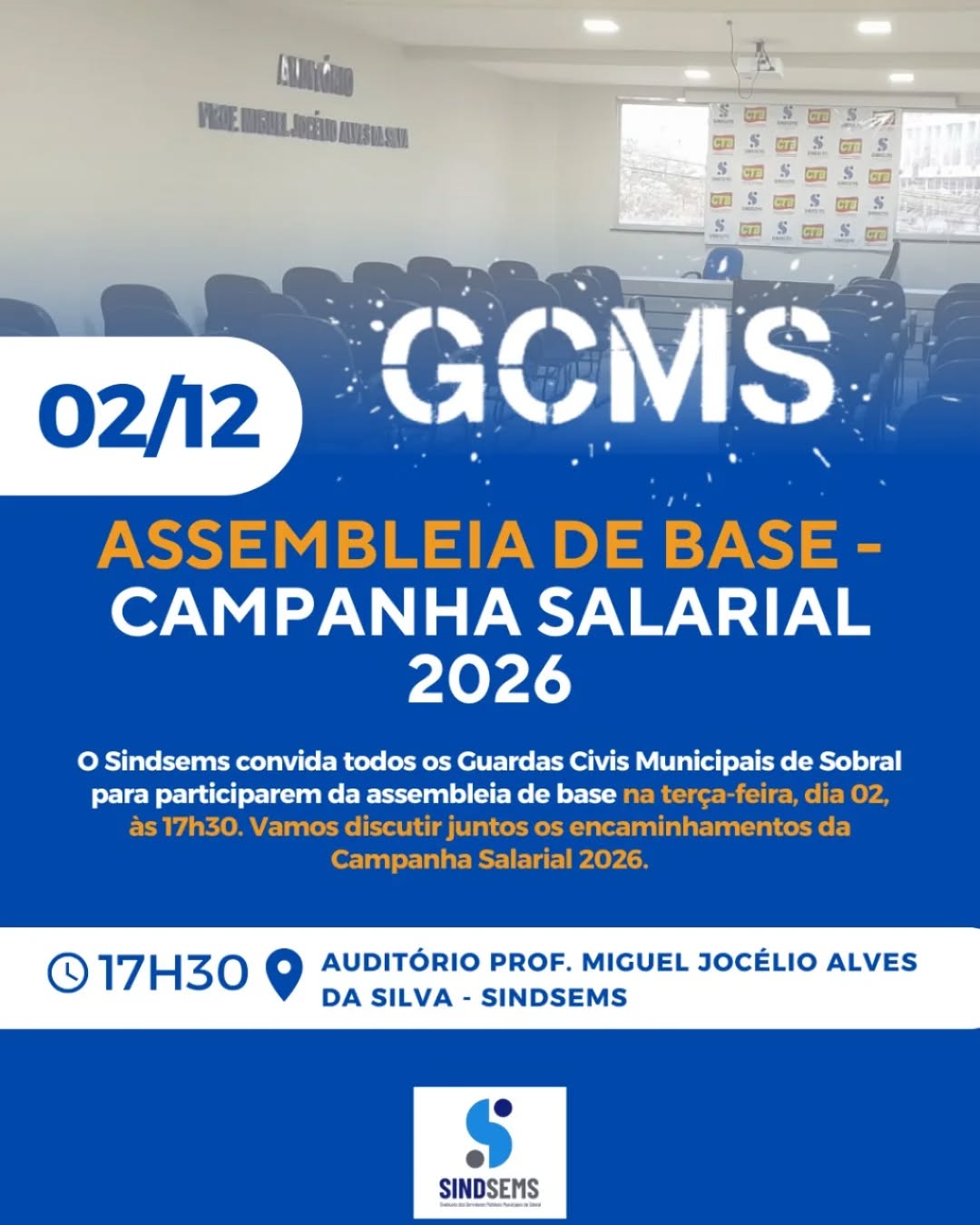 O Sindsems reafirma que seguirá firme na luta, sem retroceder, defendendo os servidores e buscando a valorização justa e necessária da Guarda Municipal de Sobral. A entidade reforça que permanecerá mobilizada até que a pauta salarial avance e contemple devidamente a categoria.