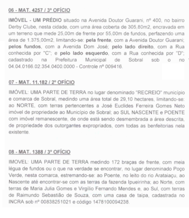 A Prefeitura de Sobral enviou à Câmara Municipal um Projeto de Lei que pede autorização para vender oito imóveis pertencentes ao patrimônio público municipal. Para viabilizar a operação, o Executivo solicita aos vereadores que aprovem a mudança da natureza jurídica desses bens, que passariam a ser classificados como patrimônio dominial, permitindo sua alienação por meio de leilão.