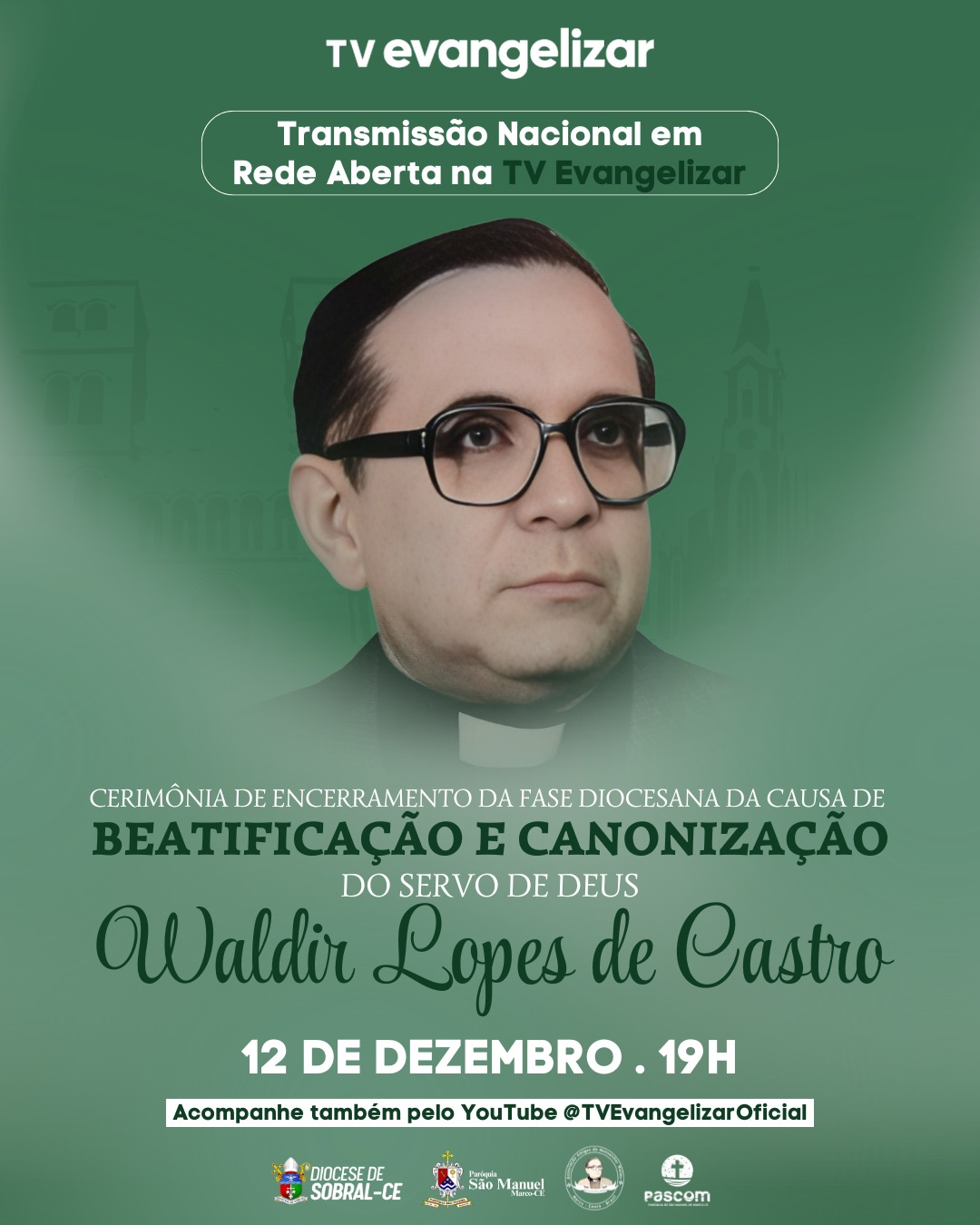 A Diocese de Sobral se prepara para um dos momentos mais significativos de sua história recente: a Cerimônia de Encerramento da Fase Diocesana da Causa de Beatificação e Canonização do Servo de Deus Waldir Lopes de Castro. O evento será realizado no dia 12 de dezembro, às 19h, na Praça do Santuário Sagrado Coração de Jesus, reunindo fiéis, religiosos e devotos que acompanham o processo que pode elevar o sobralense Waldir Lopes aos altares da Igreja.