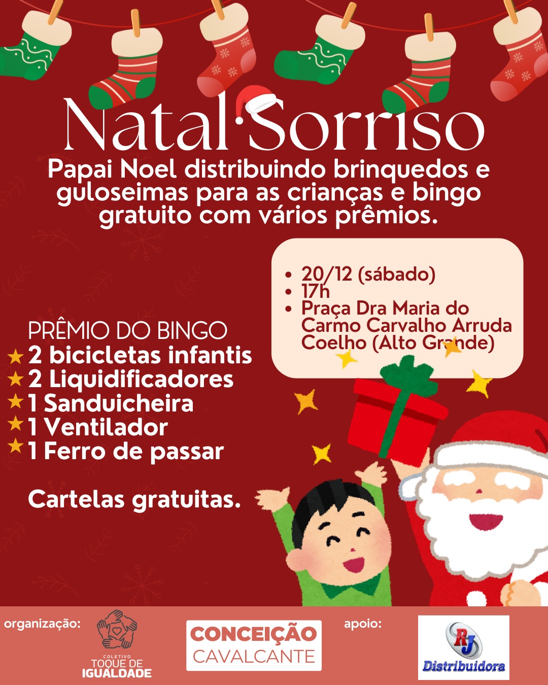 O espírito natalino vai tomar conta da comunidade de Alto Grande neste sábado, 20 de dezembro, com a realização do Natal Sorriso, um evento voltado especialmente para as crianças e suas famílias.