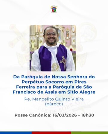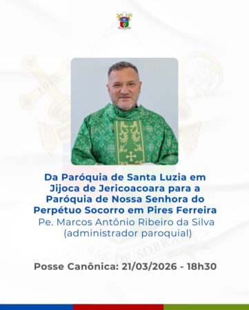 A Diocese de Sobral anunciou um novo conjunto de nomeações e transferências de padres, promovendo mudanças significativas no cenário pastoral de vários municípios da região Norte do Ceará. As alterações atingem diretamente cidades como Pires Ferreira, Ipu, Groaíras, Bela Cruz, Coreaú e Meruoca, com reorganização do trabalho pastoral e administrativo nas paróquias.