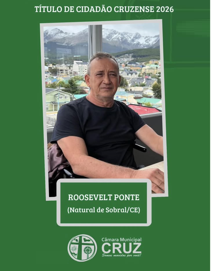Em mensagem publicada nas redes sociais, Roosevelt agradeceu o reconhecimento e destacou a emoção pela homenagem. “Sou profundamente grato à Câmara Municipal de Cruz, ao prefeito Dery e, em especial, ao vice-prefeito Carlos Dias, por esse reconhecimento que tanto me honra e emociona. 14/01 irei receber o título de cidadão cruzense”, escreveu.