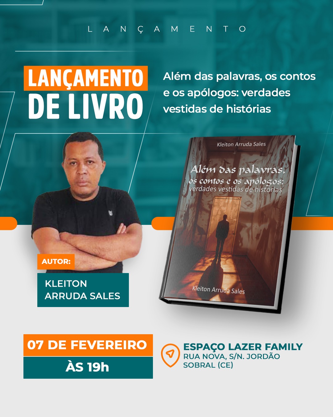 O servidor público municipal e filiado ao Sindsems, Kleiton Arruda Sales, realizará o lançamento do livro “Além das palavras, os contos e os apólogos: verdades vestidas de histórias”. A obra reúne textos que convidam à reflexão a partir de narrativas sensíveis e construídas com olhar atento sobre o cotidiano e a experiência humana.
