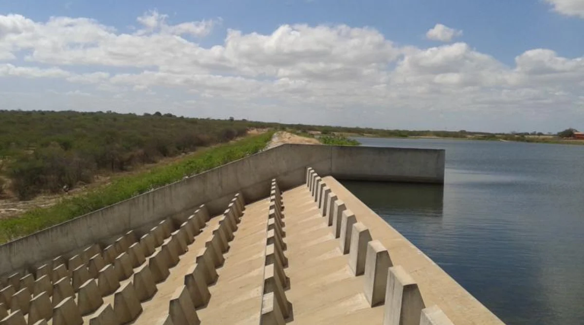 O açude Curral Velho, em Morada Nova, foi o primeiro do Ceará a sangrar neste ano de 2026. Reservatório atingiu sua capacidade máxima neste domingo (8/2), de acordo com dados extraídos às 16h38min do Portal Hidrológico da Fundação Cearense de Meteorologia e Serviços Hídricos (Funceme).