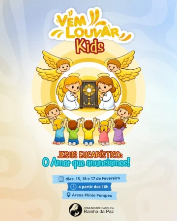 Além da programação geral, o evento contará com uma atenção especial às crianças com o Vem Louvar Kids, que acontece no ginásio poliesportivo. O espaço foi preparado para que os pequenos também vivam essa experiência de fé de forma leve e alegre, com louvor, momentos de adoração, gincanas, brincadeiras e muita animação.