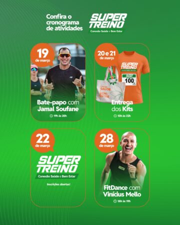 Ao longo do mês, o público poderá participar de ações temáticas, talk show, ativações, serviços gratuitos e o chamado “Super Treino”, além de outras experiências pensadas para incentivar hábitos mais saudáveis e uma rotina mais equilibrada.